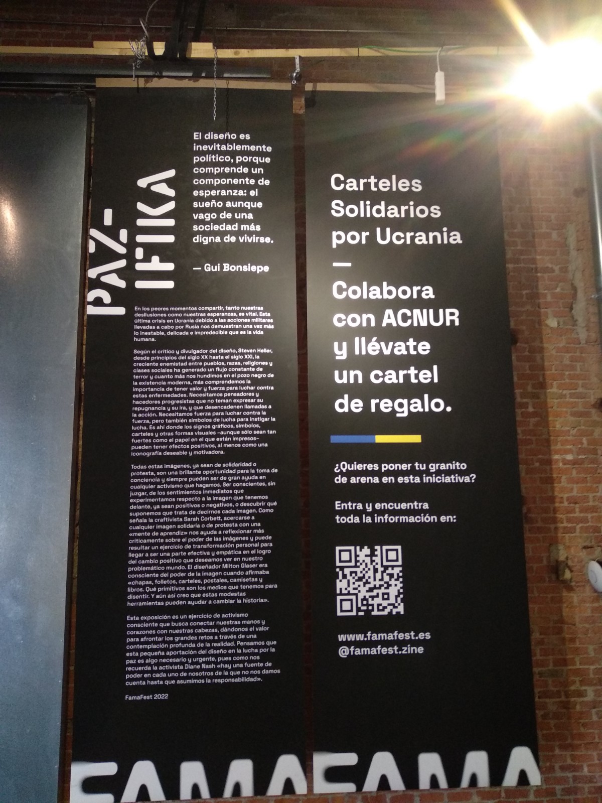 DIMAD y Fama Fest  organizan la exposición “PazifiKa. Carteles solidarios por Ucrania” con intención de recaudar fondos para entidades con experiencia en apoyo humanitario en conflictos bélicos, además de concienciarnos y hacernos reflexionar sobre lo que está pasando.