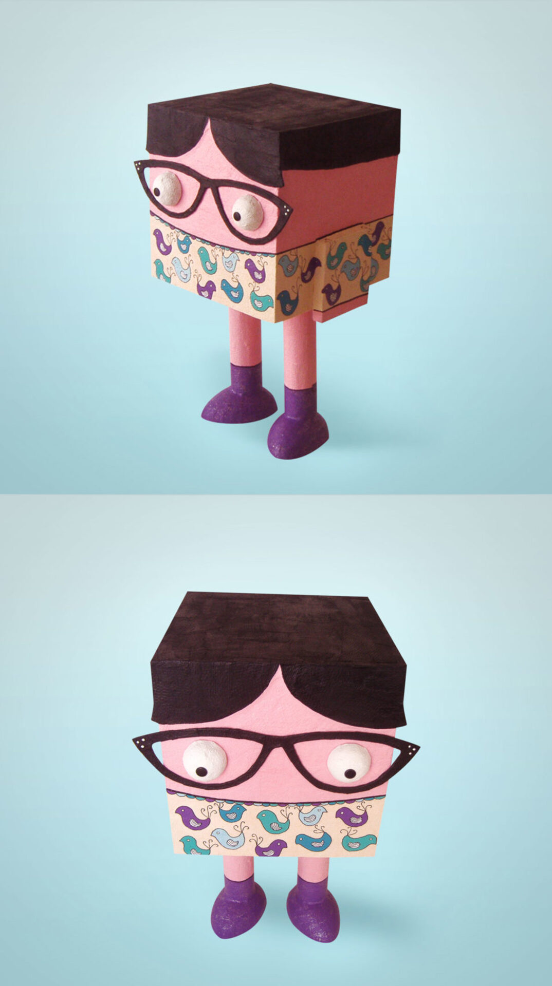 Esculturas hechas a mano de cartón y poliestireno expandido. Pintadas con pintura acrílica y barnizadas. De varios tamaños.